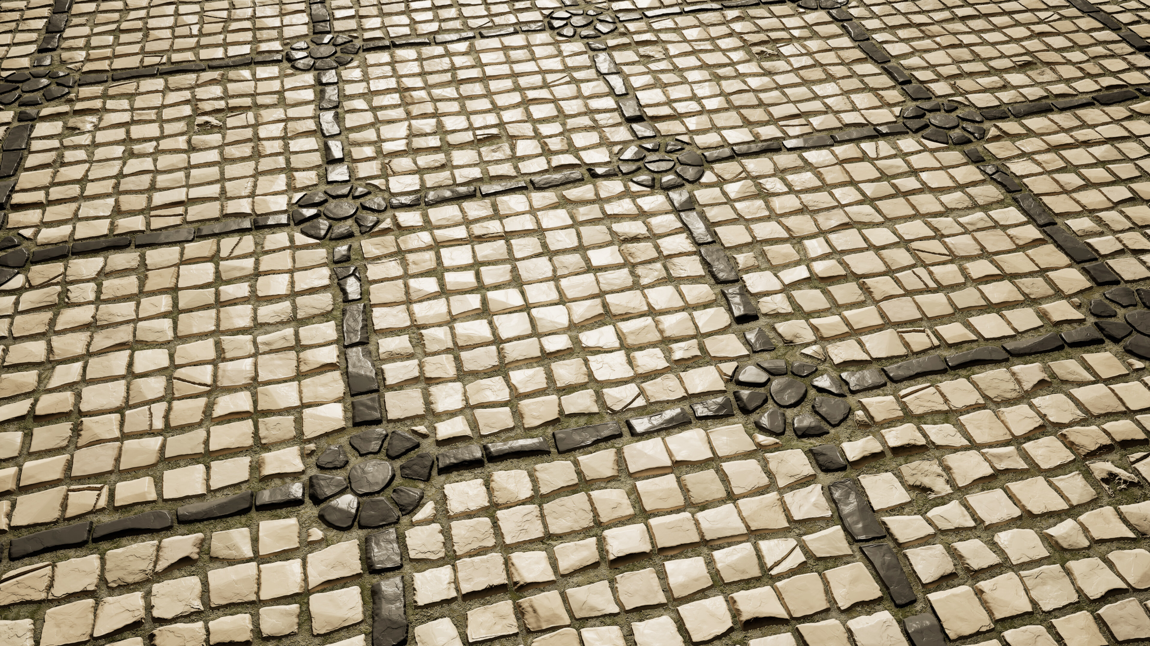 Fully procedural pavement made in Substance Designer and rendered in Unreal Engine 5 with use of parallax occlusion mapping.